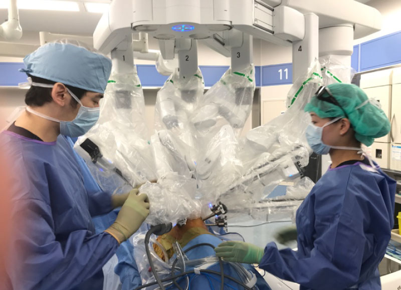 1999年にインテュイティブサージカル社によって外科医が遠隔操作できる手術用ロボット、da Vinci Surgical Systemが初めて登場しました。2014年度から前立腺癌に対し保険承認され、2018年度から呼吸器外科領域でもロボット手術が承認されました。